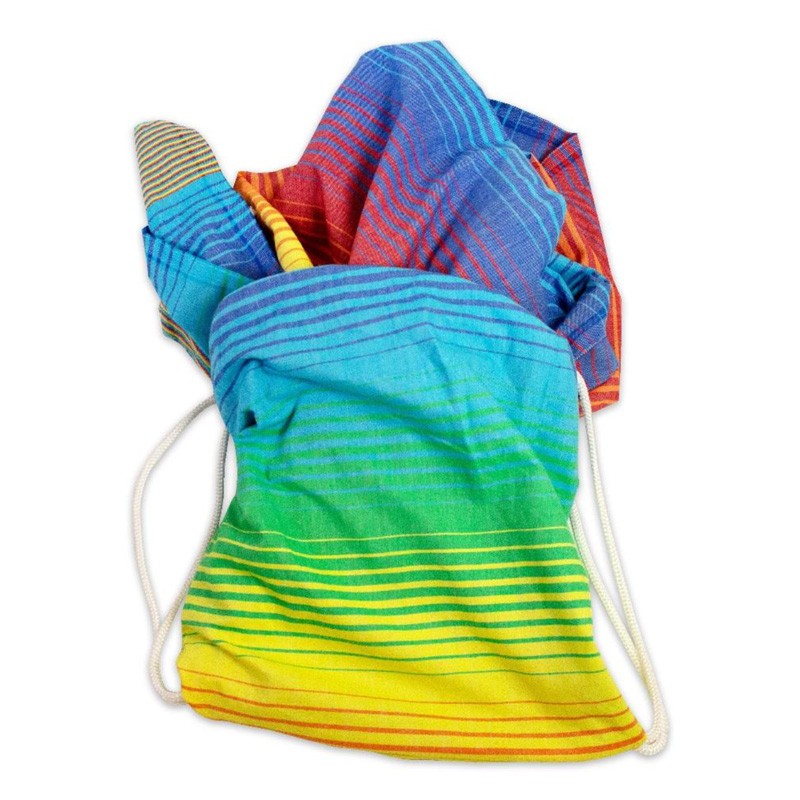 Zugbeutel mit integriertem Hamam-Strandtuch in Regenbogenfarben
